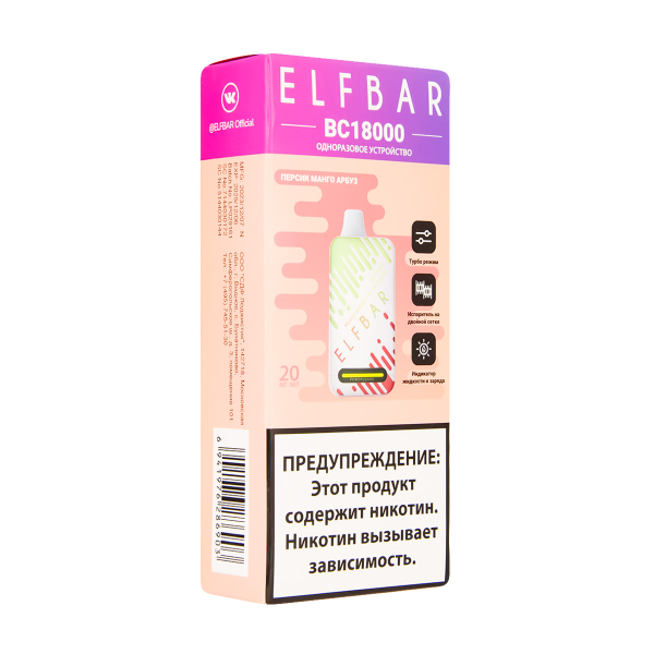 Купите Электронка ElfBar BC18000 Персик Манго Арбуз 20 Мг по цене 2 590 руб. с доставкой в Самара от сети кальянных магазинов ИванКальян.РУ.