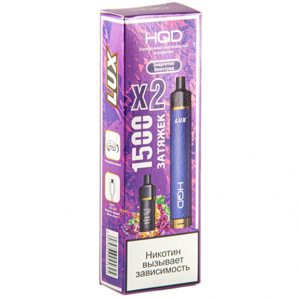 Купите Электронка Hqd Lux Энергетик Виноград (1500 Затяжек, 2 Картриджа) по цене 1 390 руб. с доставкой в Самара от сети кальянных магазинов ИванКальян.РУ.